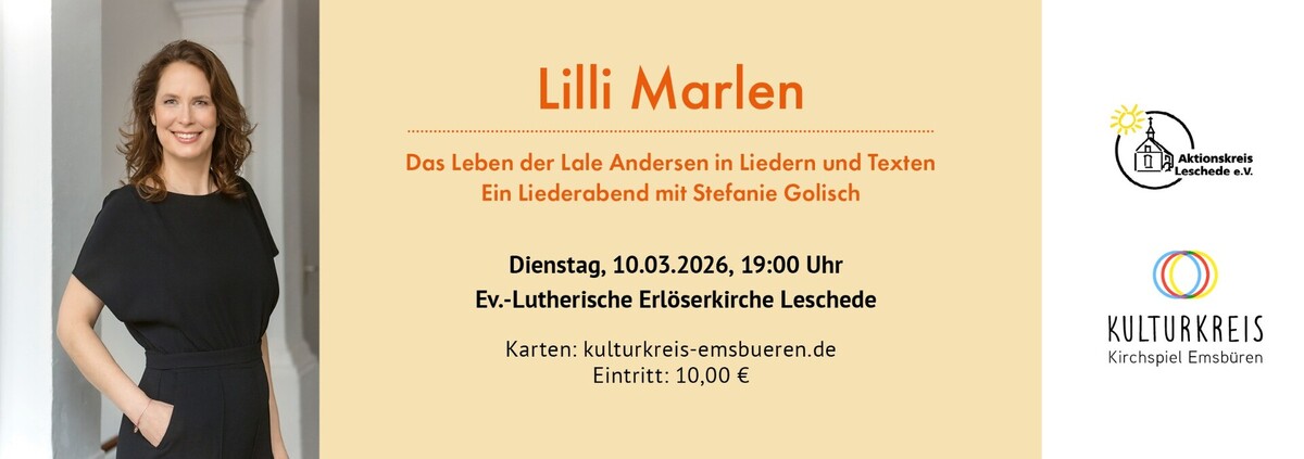 Nach dem großen Erfolg mit dem Bonhoeffer-Programm in der evangelischen Kirche 2024 lädt der Kulturkreis Kirchspiel Emsbüren mit Unterstützung des Aktionskreises Leschede wieder zu einem Abend mit Stefanie Golisch ein.