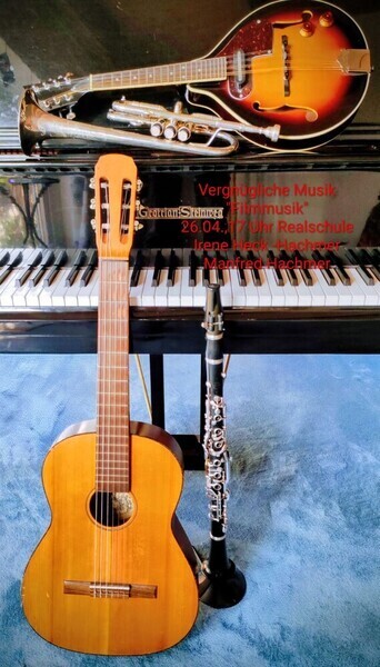Am 26.04.2026 um 17 Uhr gibt es zum vierzehnten Mal vergnügliche Musik im Wintergarten der Realschule. Im Mittelpunkt stehen berühmte Filmmusiken.